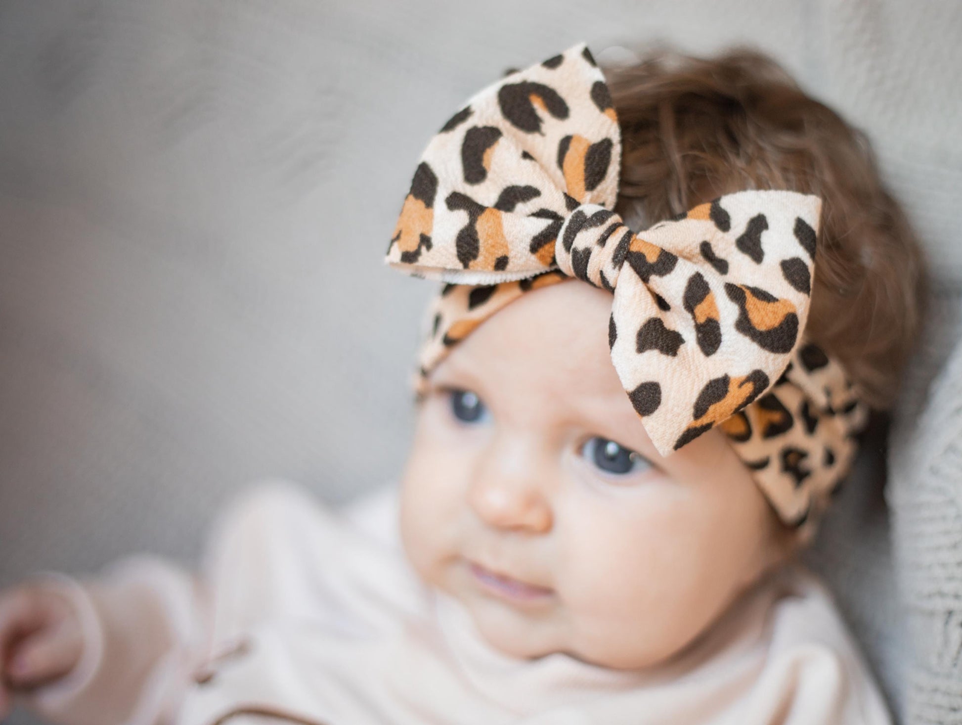 Cheetah Print Baby Bow Headband: Soft Stretchy Head Wrap